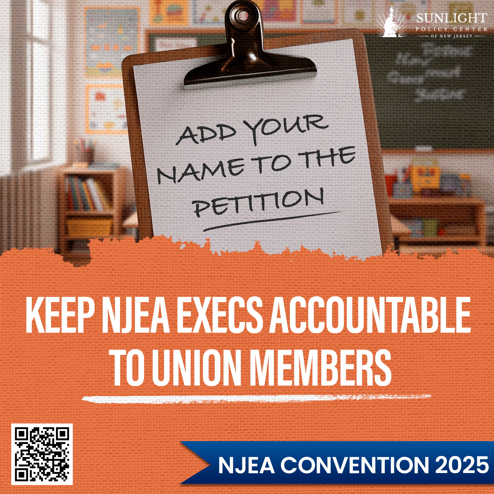 The petition lists four demands directed at NJEA leaders (whom, Sunlight points out, earn upwards of $600,000 a year while the average salary of NJ teachers is $82,000):